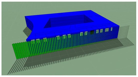 The building energy model was created with the Integrated Environmental Solution’s software Virtual Environment. Building geometry data, such as layout of elevations, floor plans, and sections, were used to accurately reconstruct the geometry of the building as a first step in the modelling procedure. The result of this operation is shown in Figure 9. Weather data were collected from the service Athenium Analytics, which is able to communicate with IES’s iSCAN platform for data storage and analysis. According to the service, the weather station is located 59 km from the building. A variety of additional data were collected to recreate a high-fidelity digital representation of the building, such as the thermal properties of the construction materials, occupancy patterns, lighting fixtures, and equipment usage. The year considered for the simulation was 2018. Air temperature, window opening, door opening, louvre opening, carbon dioxide concentrations, and additional weather variables were gathered from IoT sensors and were used for the creation of the model.