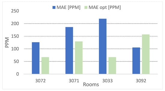 Mean absolute error for the CO2 concentration: comparison calibrated model vs. optimized model.