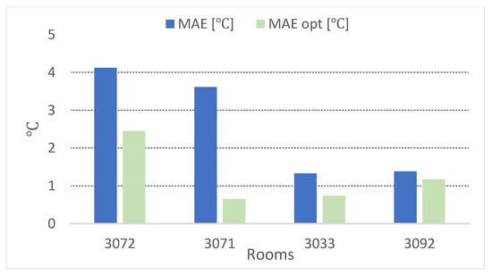 Mean absolute error for the air temperature: comparison calibrated model vs. optimized model.