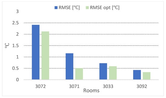 Root-mean-square error for the air temperature: comparison calibrated model vs. optimized model.