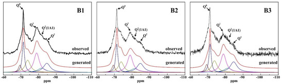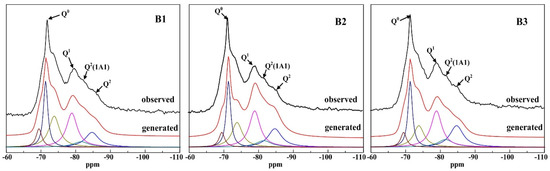 The 29Si NMR spectra of cement matrix in specimens B1–B3 after 28 days curing time.