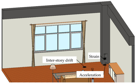 The structural response parameters involved in OpenSees are listed in Table 3. These are the response parameters that citizens are supposed to collect using smartphones, with the exception of the first issue, i.e., the maximum inter-story drift during the main shock. Some research papers have provided several methods for simultaneously estimating the inter-story drift of multiple buildings, in which the simplified models only need the floor number, total height, year of construction, structural type, and site classification for calculation [30,31]. However, as mentioned above, the calculation of the maximum inter-story drift during the main shock is trivial. For convenience, the maximum inter-story drift during the main shock is also calculated via OpenSees FEM.