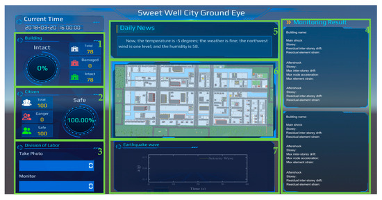 - News Module: The daily news of the city is displayed in the News Module. After the earthquake, the News Module broadcasts warning information to alert citizens. The monitoring and evacuation process is also exhibited in this module.