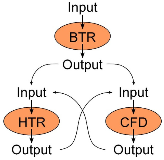 The HTR and CFD numerical models work in a coupling methodology. Coupling techniques were developed and applied in the works of Gau et al. [36], Almesri et al. [37], and Conceição et al. [38].