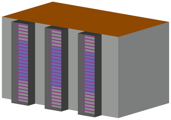 The virtual chamber has the dimensions of 4.5 m long, 2.55 m wide, and 2.5 m high and the three DSF have the dimensions of 0.60 m long, 0.2 m wide, and 2.5 m high.