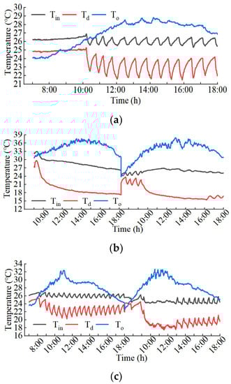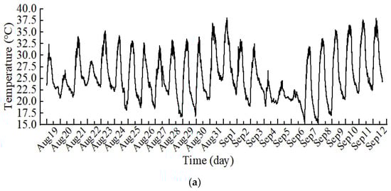 These experiments were conducted in August and September, which are representative of the summer cooling season in Jinan, China. The outdoor temperature varied from 26 °C to 40 °C and the outdoor humidity varied from 35% to 94% during the test period, as shown in