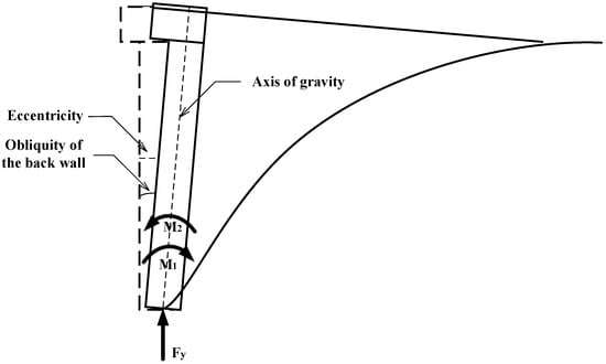 where is the overturning moment, is the resistance of the overturning moment, i.e., the frictional moment of the spherical joint, is eccentricity, Fy is the supporting force, G is the gravity of the back wall, l is the center of gravity of the rotating system, and is the obliquity of the back wall.