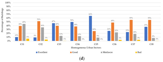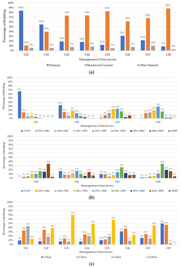 Then, different typological classes have been defined for each urban sector based on available information in spatial georeferenced datasets and with the support of local expert technicians. For each building class, geometrical, structural, and technological characteristics; the possible damage and degradation state; and maintenance condition information have been collected in the CARTIS form [40].