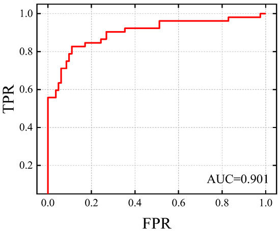 In order to evaluate the abnormal scenarios detection method, the receiver operating characteristic (ROC curve) was used as an evaluation metric, which is based on a series of different dichotomies, (cutoff values or decision thresholds), with the true-positive rate (TPR) representing the percentage of samples that are correctly judged as positive among all samples that are actually positive, and false-positive rate (FPR) representing the percentage of samples that are incorrectly judged as positive among all samples that are actually negative. The ROC curve represents the sensitivity of different thresholds to TPR and FPR, and the fuller the curve, the better the classification. TPR and FPR are calculated as follows: