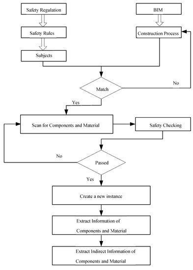 Safety rules were composed of accident subjects, judgment conditions, risks, and solutions, etc. The implementation of safety rules inspection needs to link the subjects of accidents in construction activities and extract discriminant parameters for verification. As a data source, the BIM model has its parameterized characteristics; thus that the information of each component and the relationship between each other can be directly attached to the component, which provides better convenience for the extraction of relevant information for a safety inspection. In addition, due to the characteristics of parameterization, modification or model building can be achieved directly by adjusting the parameters. This convenient way can save time and labor for safety managers on construction sites.