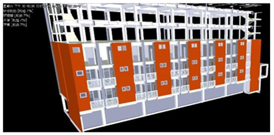 This paper then integrated the Revit information model of student dormitory building and MS project schedule into Navisworks software (license number: 559-06926929) and realized the dynamic simulation process by dividing the construction process and connecting time information of components in the construction process, as shown in Figure 14, Figure 15, Figure 16 and Figure 17.