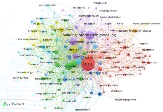 Bibliometric data can provide the necessary information to evaluate a particular field’s performance in literature, assist research institutions in managing policies regarding fund allocation, and evaluate scientific inputs and outputs [44]. Moreover, findings obtained from the bibliometric analysis can also uncover the main factors that increase contribution in a specific field of study and direct researchers to carry out more studies effectively [45]. This review studies a refined search query to find 650 documents from the Web of Science database related to collaboration and risk in BIM in the construction industry. Statistics display that 53.9% of the collected documents are related to engineering and 32.9% are related to business and management. Publications in this area exhibit an upward trend between 2010 and 2017, and the highest number of publications were in 2018 and 2022. The first research question of this study was regarding the identification of the most popular keywords in the field of building information modelling, which can be seen in the keyword co-occurrence network generated using the VOSviewer tool. The top keywords were identified from the Web of Science documents ranked by high occurrence frequency and are shown in the Table 1. The second research question was to identify the most important authors and journals. Therefore, citation metrices were used and found the following authors: Wang, Xiangyu; Eastman, Charles M.; Teizer, Jochen; Zhang, Sijie, who are from the top 10 authors in the field of collaboration and risk in BIM. Additionally, the most cited journals are: Automation in Construction; Journal of Information Technology in Construction; Engineering Construction and Architectural Management; Sustainability, Journal of Construction Engineering and Management.
