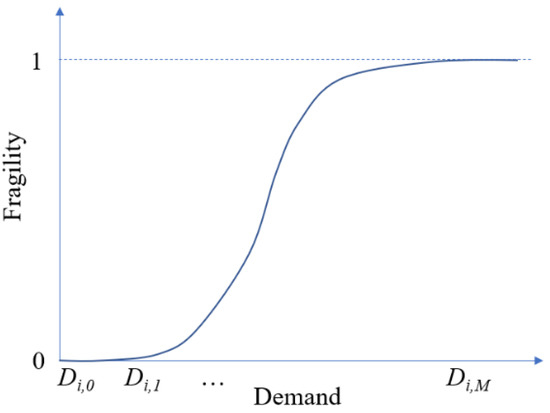 Figure 7 shows a typical fragility curve for an arbitrary joint i generated following this subsection. Usually, a fragility curve increases monotonically with the demand, e.g., the bending moment that a CSS joint takes. As guidance for structural design or retrofitting, we can find the fragility (i.e., damage probability) regarding the possible loads that the target CSS joint will take and then optimize the design or repair plan accordingly.