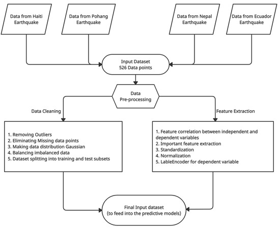 - Label Encoder—ML predictive models assume all the provided input and output variables to be numeric. Numerical data include data points that comprise numbers, such as integer or floating-point values. Categorical data involve label values instead of numerical. Categorical variables are frequently known as nominal. - library also has this requirement which implies that all categorical data must be transformed to numerical values.For the dataset applied in this study, the target variable is in the categorical form: the different damage classes assigned to the earthquake-affected RC buildings. With the one-hot encoding method, the categorical output variable can be changed to an ordinal numerical form. The ordinal encoding transform is available in the - library via the class.
