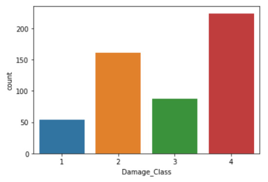 - Imbalanced Data—An imbalance in data distribution for each input feature creates objections for predictive modeling. In real-world cases, the dataset contains irregular data sharing several times, affecting the model prediction’s performance. Figure 4 depicts that the input dataset contains an asymmetric distribution of feature data which resulted in imbalanced data in each output class. For example, damage class 4 has the highest number of samples, whereas damage class 1 has the least. This kind of data distribution prevents the model from performing optimally. Synthetic Minority Oversampling Technique (SMOTE) [59] generates synthetic data for the minority class, therefore producing symmetry for majority of classes. Table 3 illustrates that, using SMOTE, the imbalanced state of data distribution in the target variable is balanced.