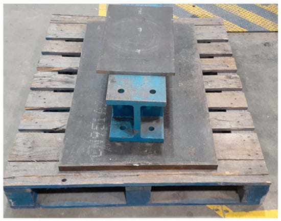 Beams at floor and ceiling levels are made of PFC100 in both longitudinal and transverse directions. Columns are made of SHS100 × 100 × 4 mm, which is a typical section for columns in modular structures. Joists are made of light steel sections C10015, in which they are connected to longitudinal beams at both ceiling and floor levels. The distance between joists is considered to be 400 mm, and the distance between the first joists to the column is considered to be 300 mm. Joists are connected to the web of beams by employing angles having 50 × 50 × 5 mm sections, which are bolted to joists by two M8 bolts and welded to the web of beams by fillet weld, as shown in Figure 2d. The connectivity of modules is provided by vertical inter-connections at the corners of each module. The details of bolted end-plate connections employed to connect the modules together are illustrated in Figure 2e. The bolted end-plate connection comprises an end plate, which is welded to the ends of columns using fillet weld and four M10 high-strength grade 8.8 bolts. The hole diameters are 12 mm, 2 mm wider than bolt diameters, to take into account practical constraints in manufacturing and assembly. The bolted connection was chosen as the intra-connection to provide connectivity between beams and columns. Figure 2f illustrates the details of intra-connections used in this experimental test. The connection includes two 200 mm × 70 mm × 6 mm plates, which are welded to the column and connected to the beam through two shim plates and eight M12 high-strength grade 8.8 bolts. While moment action in beams is transferred from beams to columns through the combination of plates and bolts, shear action is transferred by the use of shear tabs, which are welded to columns. The connectivity between shear tabs and beams is provided by welding shear tabs to beams. The mass of each floor corresponding to dead and live loads is considered to be 300 kg. Artificial masses were placed on the second and third floors of the test specimen, as well as the ceiling at the third level. Figure 3 shows the artificial mass used to apply dead and live loads.