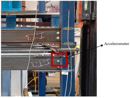 The determination of dynamic characteristics of a system, based on the OMA method, needs to monitor and record responses of the system under different types of vibration, including free and ambient vibrations. In this method, the time history of the input forces is not required to be recorded. Therefore, to record the responses of the structure, it is instrumented with five highly sensitive accelerometers. The accelerometers are single-axis accelerometers, which are connected to the tops of columns by heated glue at ceiling levels of different storeys along the middle axis of columns. Figure 4 shows an accelerometer attached to the column of the test specimen. A data acquisition system is employed to monitor and record the time history of responses. The accelerometers are micro-electro-mechanical systems (MEMS) produced by Silicon Design Accelerometers and connected to the data acquisition system with shielded four-core cables having low noise. In order to monitor and record the responses of the structure, the LabVIEW software, which supports the data acquisition system, is employed. The software can record 1000 samples per second, corresponding to the nominal Nyquist frequency of 500 Hz.