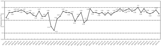 LMR aggregates were provided by Shi Jiangchong quarry (Kaili, China) in the southeast area of Guizhou Province, China. Crushed low-grade metamorphic rock with four particle size grades, i.e., 20–30 mm, 10–20 mm, 5–10 mm and 0–5 mm are used, the particle size distribution is listed in Table 3. The alkali activity of the LMR in the Shi Jiang Chong quarry was judged by the rapid mortar rod method, and a total of 137 groups of LMR rocks were sampled and tested for the alkali activity during different time periods between May 2017 and July 2019, which can indicate the fluctuation of the alkali activity of the LMR rock. The monitoring results of the alkali activity of the LMR in the Shi Jiang Chong quarry are illustrated in Figure 1. It can be seen that the 14 days-expansion rate of LMR is basically between 0.1% and 0.2%, and the expansion rate of almost all specimens is less than 0.3%, which meets the requirement in TB/T 3275 [21].