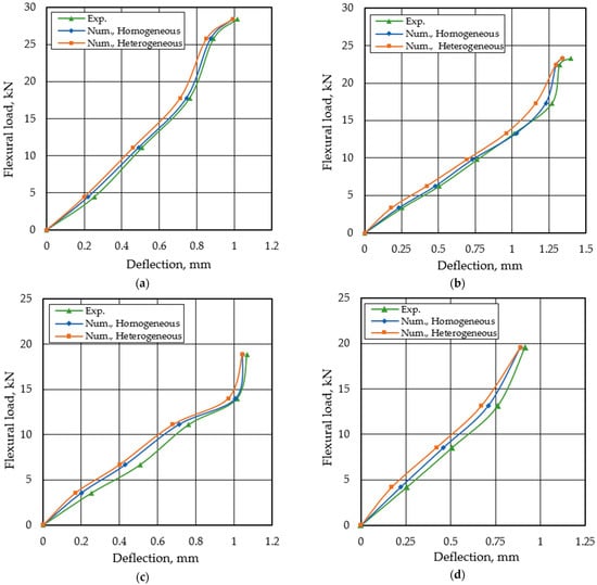 | Mix No. | Experimental [37,38] | Numerical (Homogeneous Models) | Numerical (Heterogeneous Models) | |||