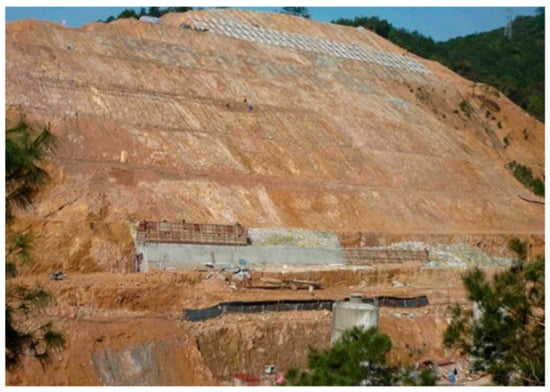 Hefei-Fuzhou HSR is an important part of Beijing-Fuzhou HRR; DK592 + 532.00~ + 562.00 is a section of the high cutting slope (Figure 2). The area is low and hilly with gentle terrain and developed vegetation. The groundwater is bedrock fracture water, which is more developed. The groundwater is not chemically erosive (judged by the chloride ion content, without chloride salt erosive).