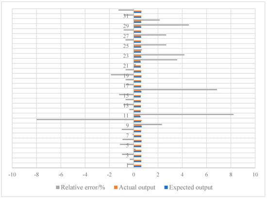 The results of the error analysis for the test set data are shown in Figure 5. It can be seen that the maximum absolute value of the error is 8.22%; therefore, the training effect of the model is satisfactory.