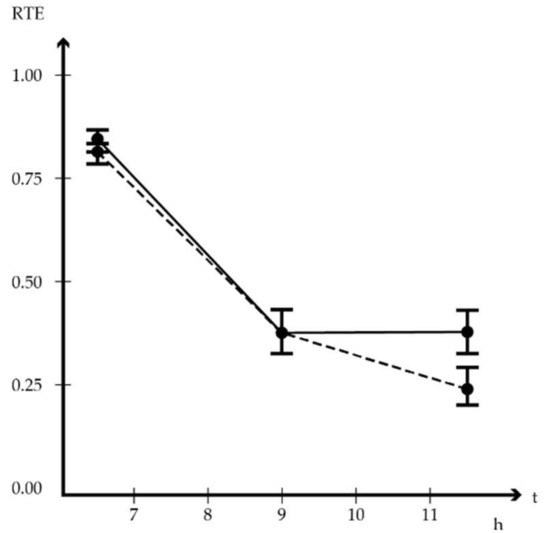| Treat. × Time | 3.91 (1.91, ∞) | 0.022 | * | 09:00 | 0.38 | 80D × 09:00 | 0.37 | 80R × 09:00 | 0.38 | |