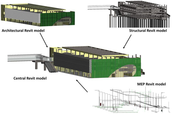 To establish the Revit model of the parking lot case, the building project was divided into architectural, structural, and MEP sections based on its components. As shown in Figure 8, the task of the designing solution was performed by modeling each part individually.