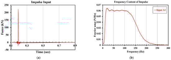 Applied impact load: (a) time history and (b) frequency content of impulse input A1.