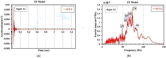 Time history and frequency contents of the FF response: (a) time history of acceleration; (b) frequency content of the FF response.