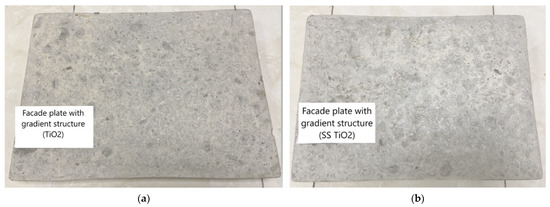 Appearance of concrete facade plate (a) with TiO2; (b) with surface-sensitized TiO2.