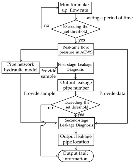 Research diagram of two-stage leakage diagnosis in ACWSs.