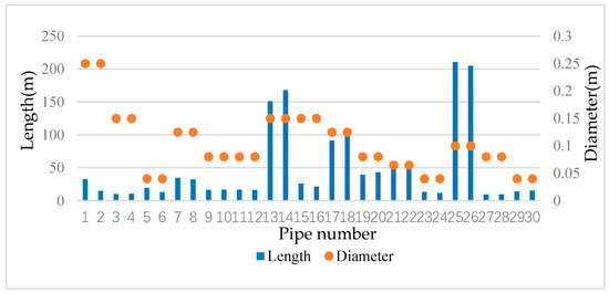 In addition, this paper is devoted to the study of pipeline leakage faults, which account for more than 80% of ACWS faults [30]. However, there are still blockage and junction problems in actual running water systems, which will be another direction for further research. Moreover, the ACWS pipe network leakage diagnosis method proposed in this paper only accounts for single-point pipe network leakage problems. Although the phenomenon of multiple simultaneous leakage failures is rare in the normal operation of running pipe network systems, there still exists a certain degree of possibility of this situation occurring. Therefore, the problem of multiple leakage faults occurring at the same time in ACWS pipe networks needs to be investigated in the future.