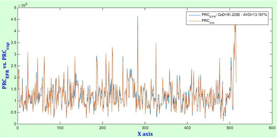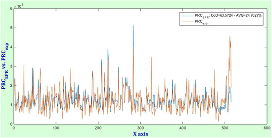 Selling price determined by EPR-MOGA (PRCEPR) vs. selling price expected for model V (PRCexp).