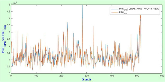 The outputs of the elaborations carried out for all models have been represented in Figure 1,Figure 2,Figure 3,Figure 4 and Figure 5, where Xaxis represents the number of observations, and on the Yaxis of each model, the selling price determined by EPR-MOGA (PRCEPR) is compared to the selling price expected in correspondence of each model (PRCexp).