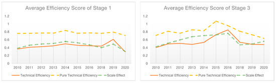 After the adjustment of the SFA model, the average efficiency scores are improved, and the SE always plays a leading role in the TE, which is consistent with the trend of the TE.