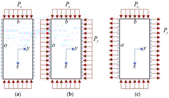 During the service period or loading process, the steel tube will be squeezed due to the deformation of concrete, causing the transverse stress in the tube. Regarding this condition, the stress state of the side plate is transformed into bidirectional stress (axial compression and transverse tension) from unidirectional stress (axial compression) (Figure 1). However, as the boundary condition of the component has not changed, the strength and stability of the side plate will be varied with the stress state.