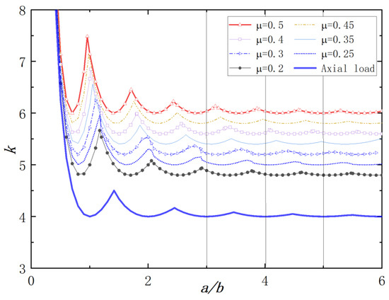 The variation of the buckling coefficient of the side plate with different nominal Poisson’s ratios (bidirectional stress).
