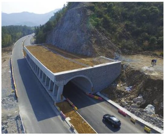 In recent years, frequent disasters have brought vast losses of life and property, such as earthquakes, floods, landslides, and rockfalls. Currently, rock-shed structures are used to prevent the impact damage caused by rockfalls and landslides in China. Rock-shed structures are frame structures with slabs and cushion materials on the top [,,], as shown in Figure 1. The research showed that the damage of the rock-shed structures was mainly caused by earthquake and rainstorms after the Wenchuan earthquake. In both disasters, 80 percent of the damage was caused by rockfalls []. The cushion has a significant influence on the impact resistance of rock-shed structures [,], so it is necessary to study the impact resistance of cushion material. Sand–expanded-polystyrene (EPS) blocks and Sand–expandable-polyethylene (EPE) blocks have been used as cushion materials [,,,,]. In addition, earthquakes have caused damage to houses, dams, slopes, bridges, and other engineering structures. Many improvement methods have been proposed to reduce earthquake damage and protect structures from ground vibration, among which seismic isolation and absorption is one of the methods to improve the seismic performance of foundations. However, its application has been limited because of the high cost and the requirements of many experiments and field experience []. An alternative approach is to use lightweight and compressible materials between the foundation and the structure [,,], such as tyre aggregate, wood chips, and EPS geofoam as isolation materials [,,,,], as shown in Figure 2. These materials not only reduce the cost and improve corresponding performance, but also protect the environment and provide environmental benefits by recycling these materials instead of storing them. EPS and EPE are used to prevent the impact of rockfalls to the rock shed and reduce seismic damage to structures, and it is necessary to study the basic mechanical properties and impact resistance of materials.