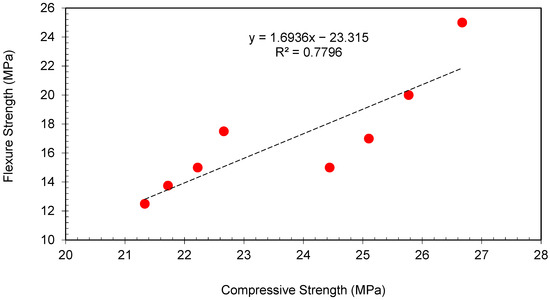 Figure 12 shows the correlation between compressive and f1exure strength on different days of curing. It can be noted that a strong correlation exists between compressive and flexure strength having an R2 value approximately equal to 90% (78%).