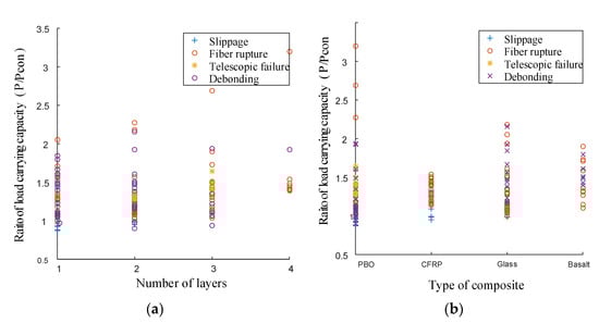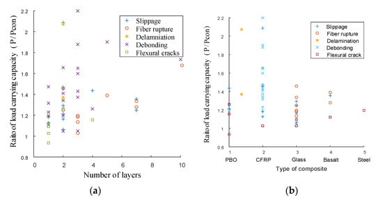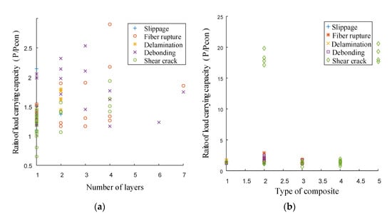 An increase in load-carryifigureng capacity ratio versus: (a) number of layers; (b) composite type with respect to FMs.