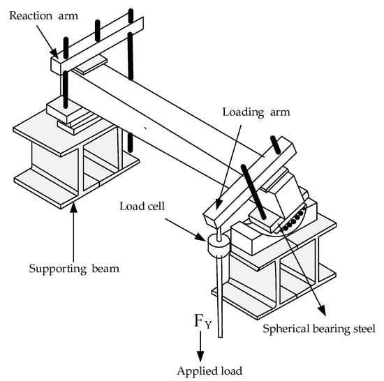 The effectiveness of FRCM systems as torsional retrofitting materials for RC structures is investigated, and the significant aspects of structural elements with composite materials are reviewed in this study [,,,]. In the case of the effect of the strengthening configuration, a series of experimental tests have been thus far conducted on concrete repaired with PBO-FRCM composites as well as various wrapping configurations, and it has been revealed that the configuration of retrofitted beams with four-sided bonds can have significant performance in terms of the cracking torque and the torsional strength than the baseline beam, while the three-sided wrapping configuration does not follow an effective trend in the case of improving the torsional performance owing to fiber slippage []. A hydraulic actuator with a 130-kN capacity was used to conduct a test on the beam via a loading arm. An eccentricity of up to 508 mm normal to the longitudinal axis of the beam was provided. The test setup has a torsional capacity of 65 KN-m (Figure 5) [].