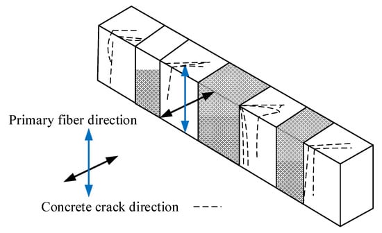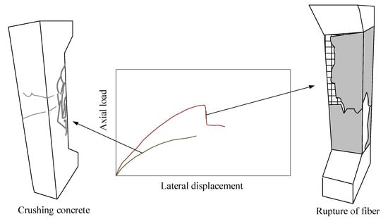 The fiber axial stiffness contributes to increasing load-carrying capacity, and obtained by Equation (15), wherein is the fiber axial stiffness, represents the reinforcement fiber percentage, and stands for the cracked modulus of the fiber, and then is calculated using Equation (16) []: