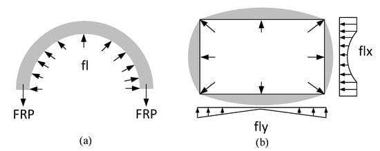 where stands for the tensile strength of the FRCM reinforcement and refers to more than 0.004 (ultimate deformations) [].
