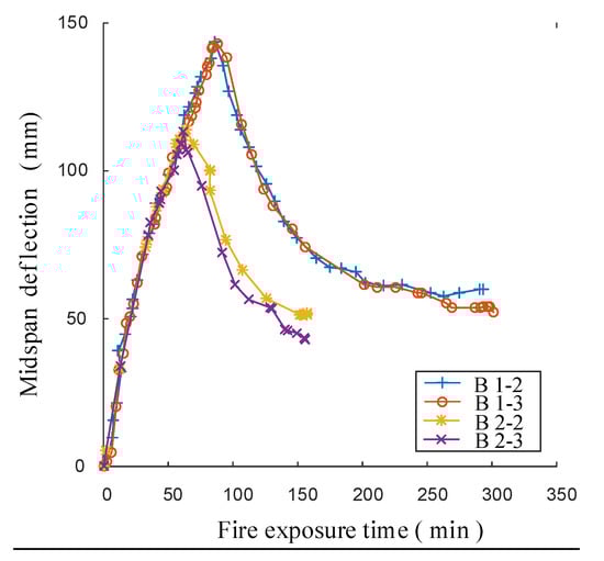 where is the fatigue flexural stiffness, shows the elasticity modulus of the concrete, stands for the moment of inertia on the cracked cross-section, denotes the maximum fatigue load, represents the mid-span deflection, and B refers to the realistic flexural stiffness [].