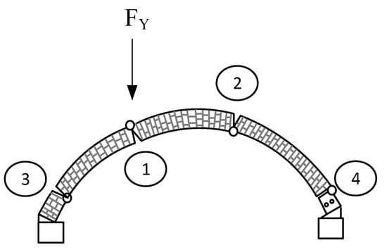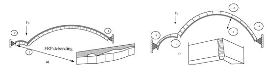 - Castori, G.; Borri, A.; Corradi, M. Behavior of thin masonry arches repaired using composite materials. Compos. Part B Eng. 2016, 87, 311–321. [Google Scholar] [CrossRef]