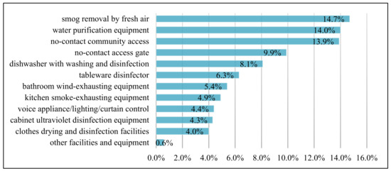 In the future, the indoor-space facilities and equipment will be more intelligent and convenient, which serve as the added value of the living space. After the COVID-19 outbreak, the residential demands of intelligent facilities and equipment will become more profound and accurate. More attention will be paid to smog removal by fresh air, water-purification equipment, and no-contact facilities (Figure 4).
