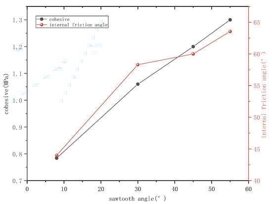 Relationship between cohesive force, internal friction angle and sawtooth angle.