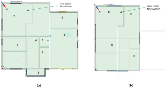 Air change rate is one of the key factors that shows the correlation between a building’s energy efficiency level and a healthy indoor environment. The proposed air change rates of 0.3–0.7 h−1 represent the most commonly extracted values from the database of energy performance certificates, which is available for practicing energy auditors. According to Blight et al., an air change (ACH) rate of 0.3 h−1 is recommended; otherwise, the air can become “stale” (excess CO2, flushing of indoor air pollutants) and excessively dry (less than 40% humidity) [27]. Such low levels of air change imply the careful selection of interior finishes and furnishings, to minimize indoor air pollution from VOCs (e.g., formaldehyde). Such a low air exchange rate is very commonly applied to regular buildings without consideration of the careful selection of interior elements, as well as with the “assumption” that this air change rate will be provided by means of natural ventilation with window openings. This approach leads to the fact that many single-family homes suffer from “sick house” syndrome, and there are real complaints about the existing microclimate. In turn, the increase in air exchange entails a significant increase in energy consumption, which negatively affects the energy efficiency of the building and bills for consumed energy. Considering these factors, it is necessary to conduct a detailed analysis of building systems and propose possible solutions to improve the indoor microclimate and energy performance of buildings while reaching the goals set by the existing energy policy of the European Union.
