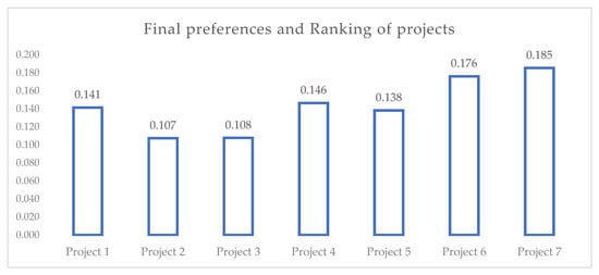 According to Table 9, Project 7 was the most appropriate (preferred) of the construction projects, as demonstrated in Figure 4.