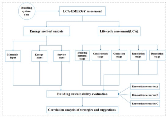 This paper aims to assess the ecological sustainability of building systems through the LCA-emergy method. Meanwhile, three renovation scenarios were designed and implemented in the case building, which provide a reference for the sustainable development of future architecture.